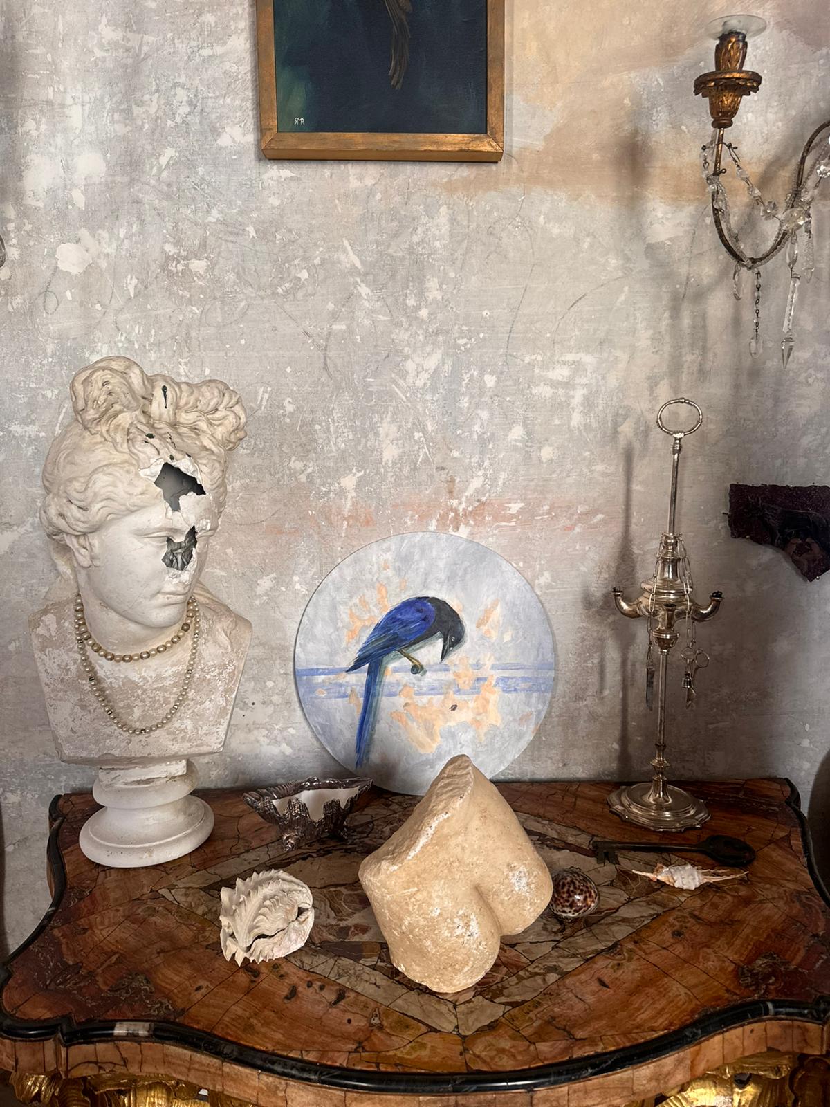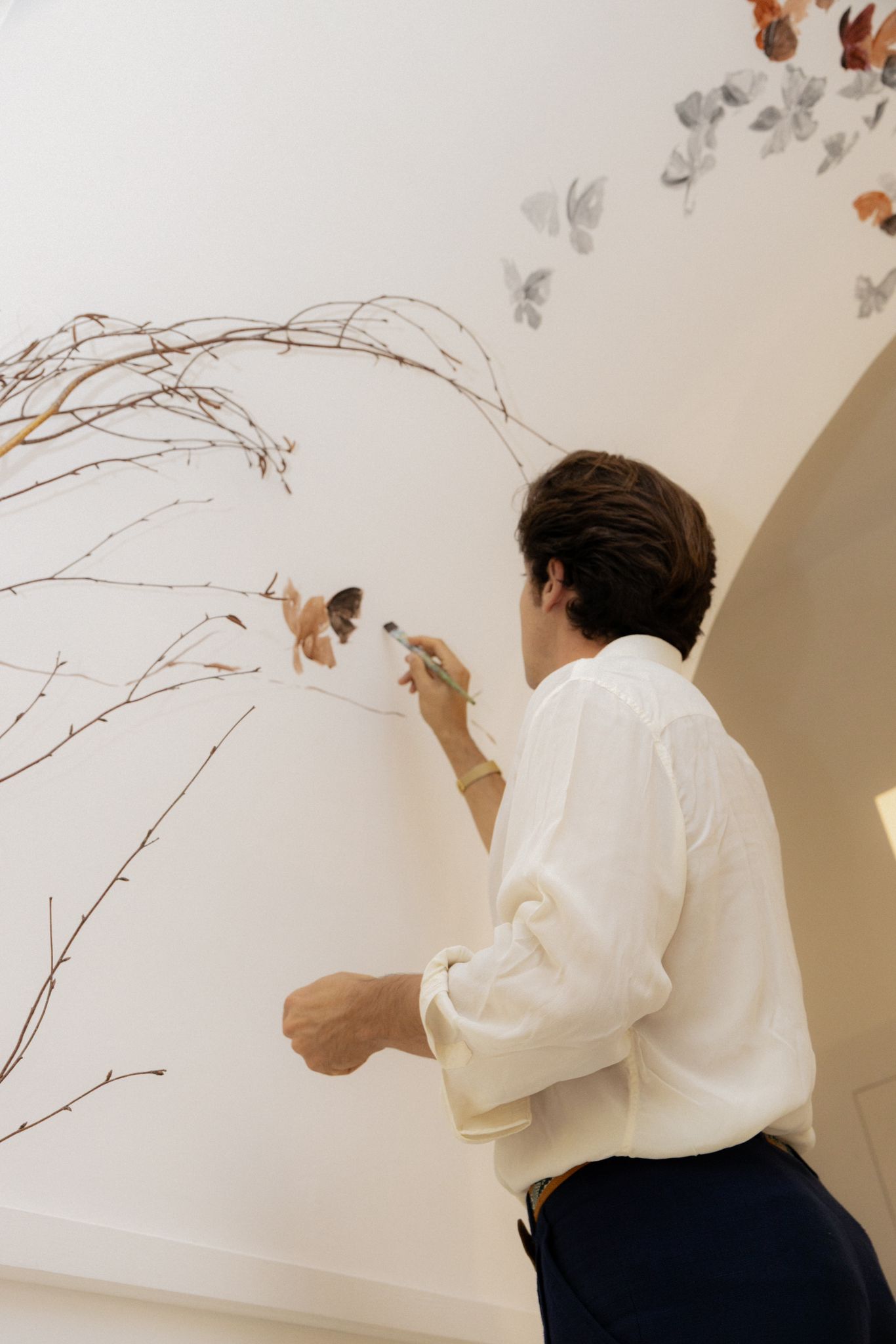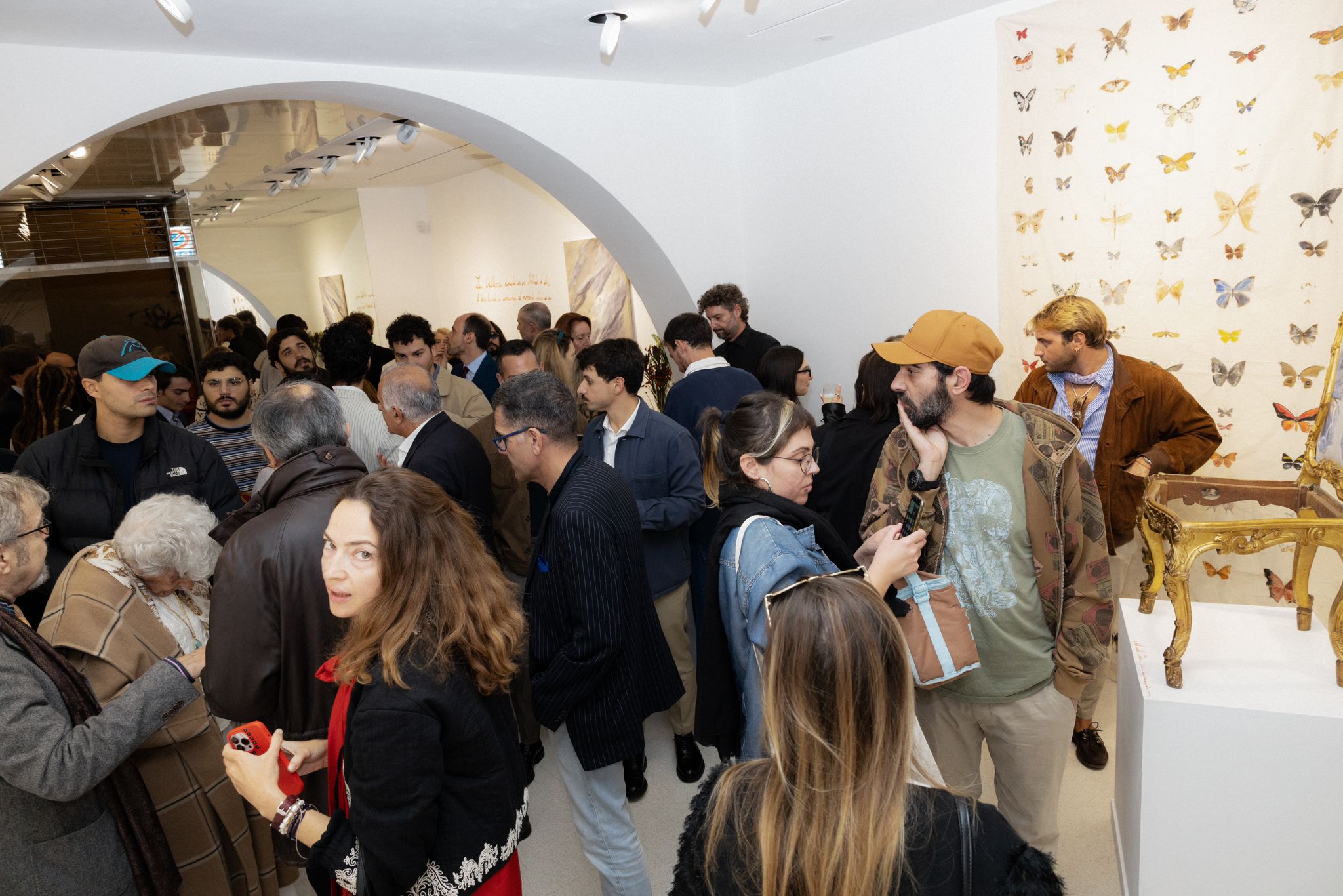 L’artista romano propone negli spazi storici della Galleria, fino al 28 ottobre, un corpus di lavori che intreccia la pittura su tela agli interventi su clessidre, specchi e cornici antiche, creando un microcosmo in cui coesistono natura, memoria e ornamento. «Ogni farfalla non è solo espressione delle sfaccettature presenti in natura, ma di una possibile connessione tra culture ed epoche. Ci ricorda che anche il gesto più piccolo può generare conseguenze immense», spiega l’artista.