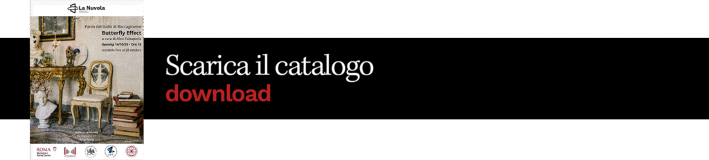 La Galleria La Nuvola di Via Margutta è lieta d’ospitare, martedì 14 ottobre 2025 alle ore 18, la personale di Paolo del Gallo di Roccagiovine (Roma, 1995), a cura di Alice Falsaperla e con l’intervento critico di Elio Pecora. L’evento è inaugurato in occasione della Notte Bianca, iniziativa indetta dall’Associazione Via Margutta, che patrocina l’evento insieme al Comune di Roma. Dal titolo Butterfly Effect, la mostra pone come fulcro il tema della farfalla, simbolo universale di metamorfosi, fragilità e rinascita.